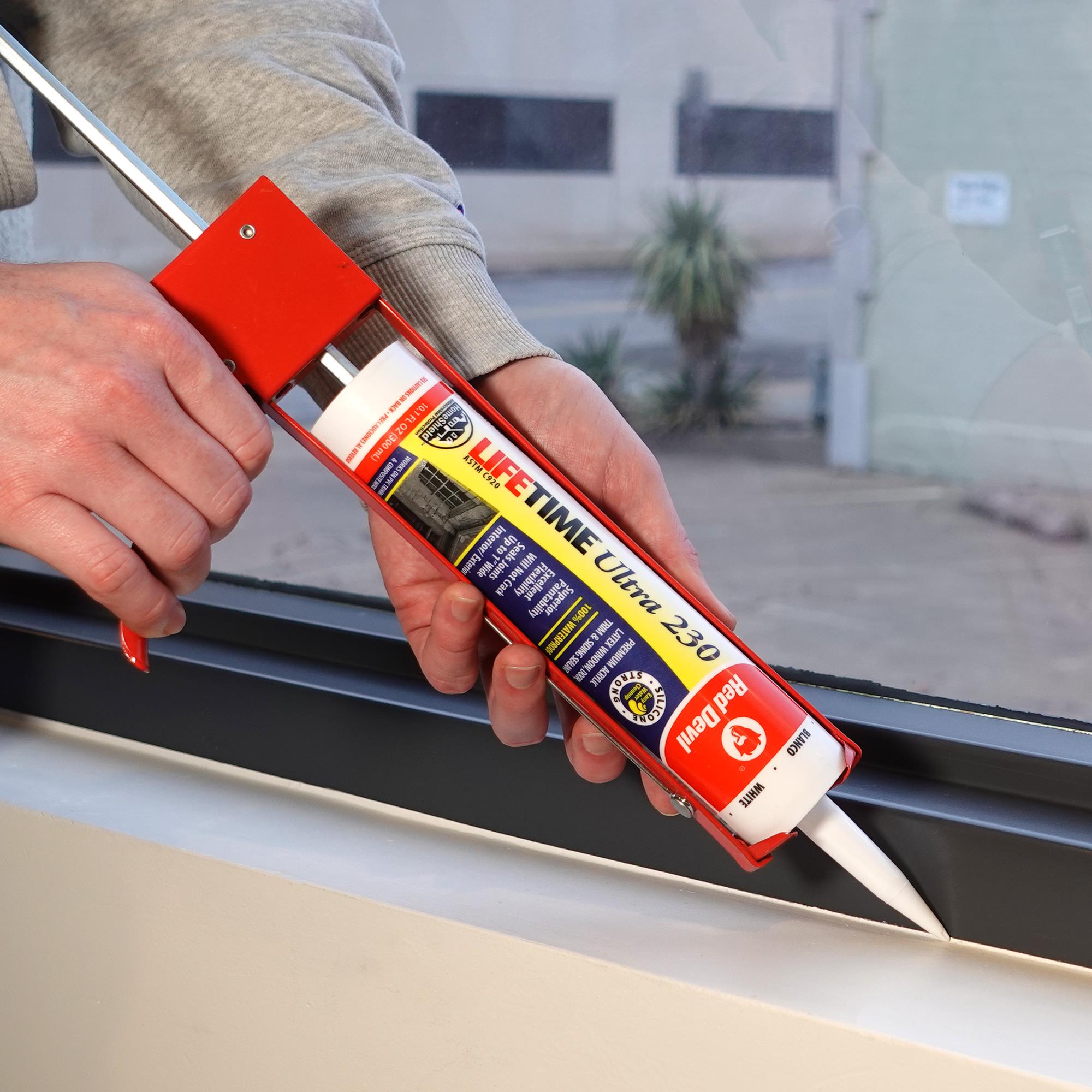 Red DevilLifetime® Ultra 230 Premium Elastomeric Acrylic Latex Sealant is a high-performance, multi-purpose sealant formulated to last for the lifetime of your home. This unique formulation provides the maximum level of durability on a variety of substrates indoors or outdoors. It offers excellent paintability and includes HomeShield™ Antimicrobial Protection to ensure against the worst types of mold and mildew.